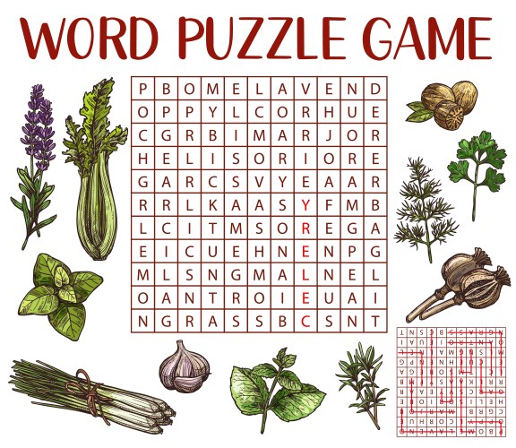 Spices herbs or seasonings sketch crossword grid Vector Image