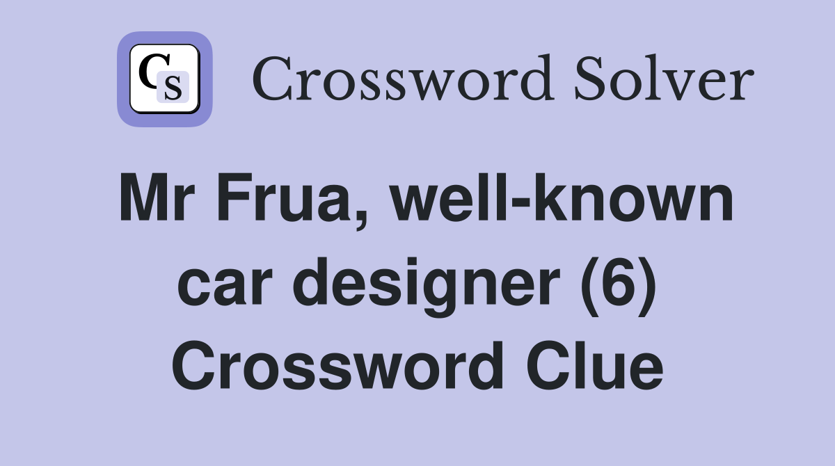 Mr Frua well known car designer (6) Crossword Clue Answers