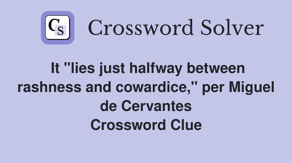 It quot lies just halfway between rashness and cowardice quot per Miguel de