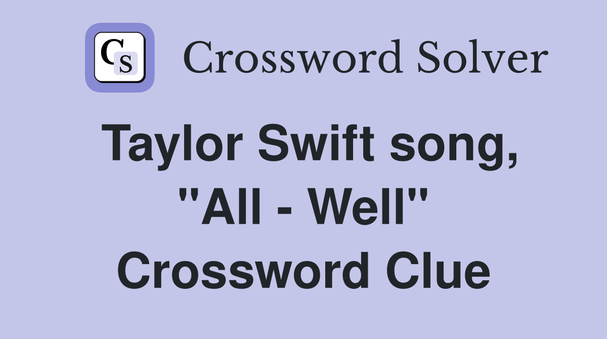 Taylor Swift song quot All Well quot Crossword Clue Answers Crossword Solver