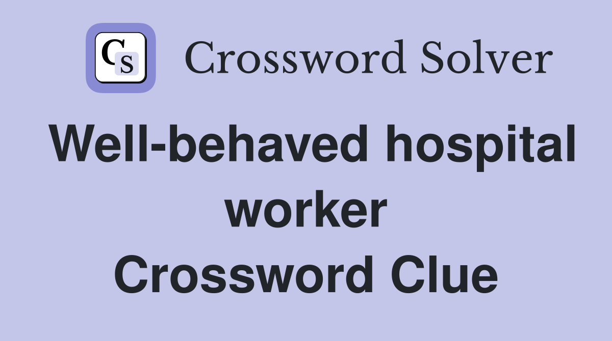 Well behaved hospital worker Crossword Clue Answers Crossword Solver