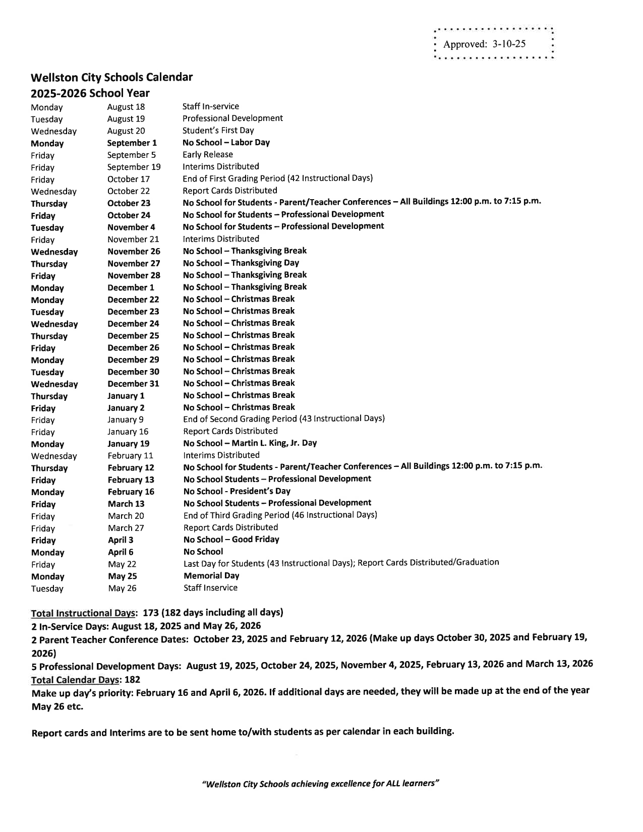 Wellson City schools calendar 25 26 Revised PDF EduCounty