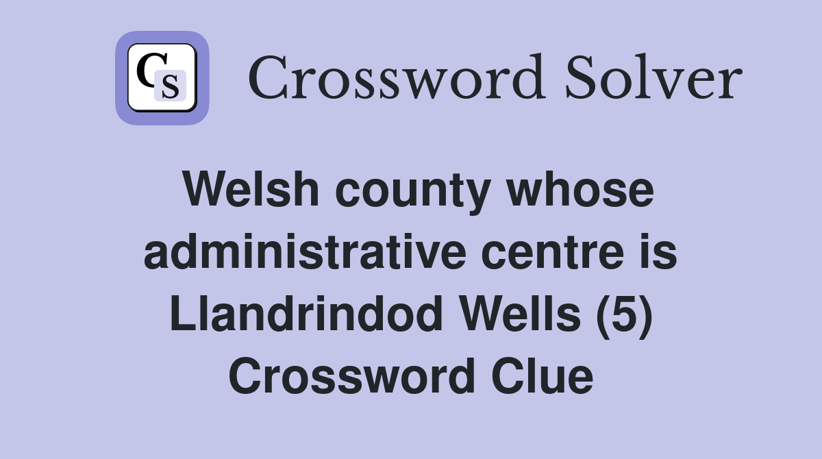 Here are some of the images for Welsh County Crossword Clue that we found in our website database.