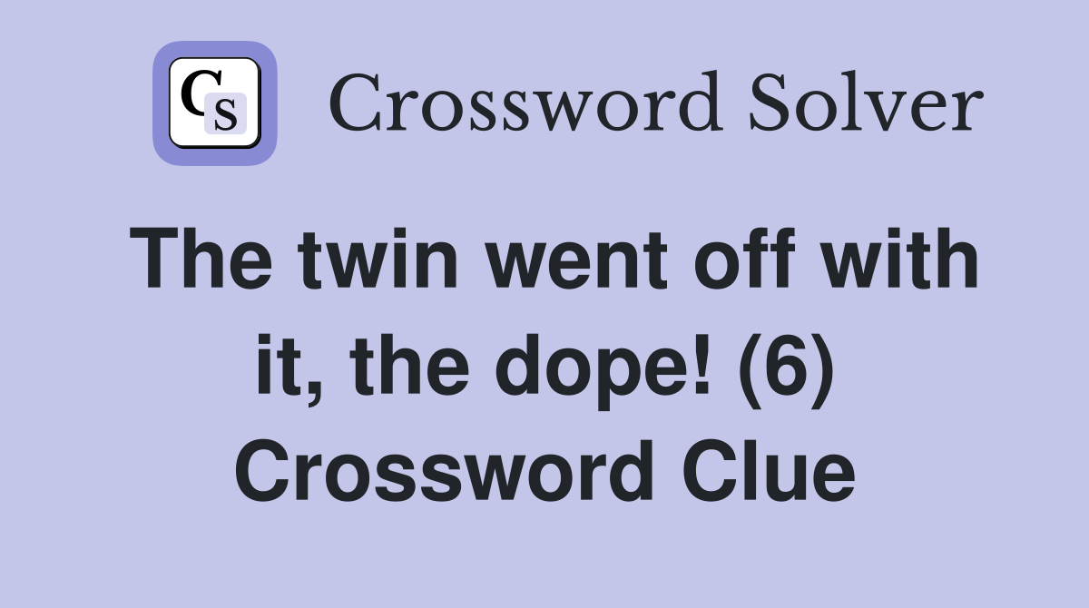 The twin went off with it the dope (6) Crossword Clue Answers