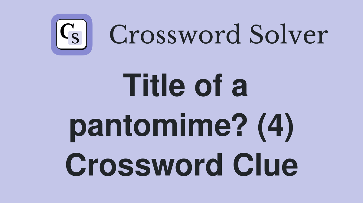 Title of a pantomime? (4) Crossword Clue Answers Crossword Solver