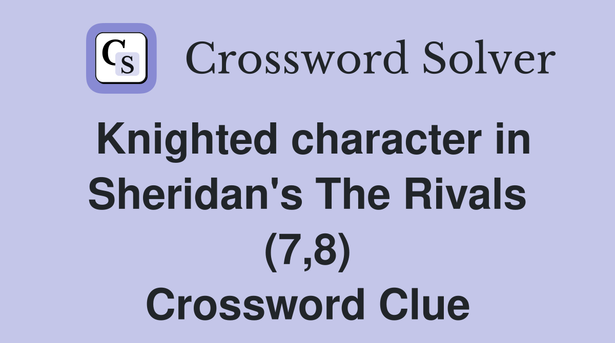 Knighted character in Sheridan s The Rivals (7 8) Crossword Clue