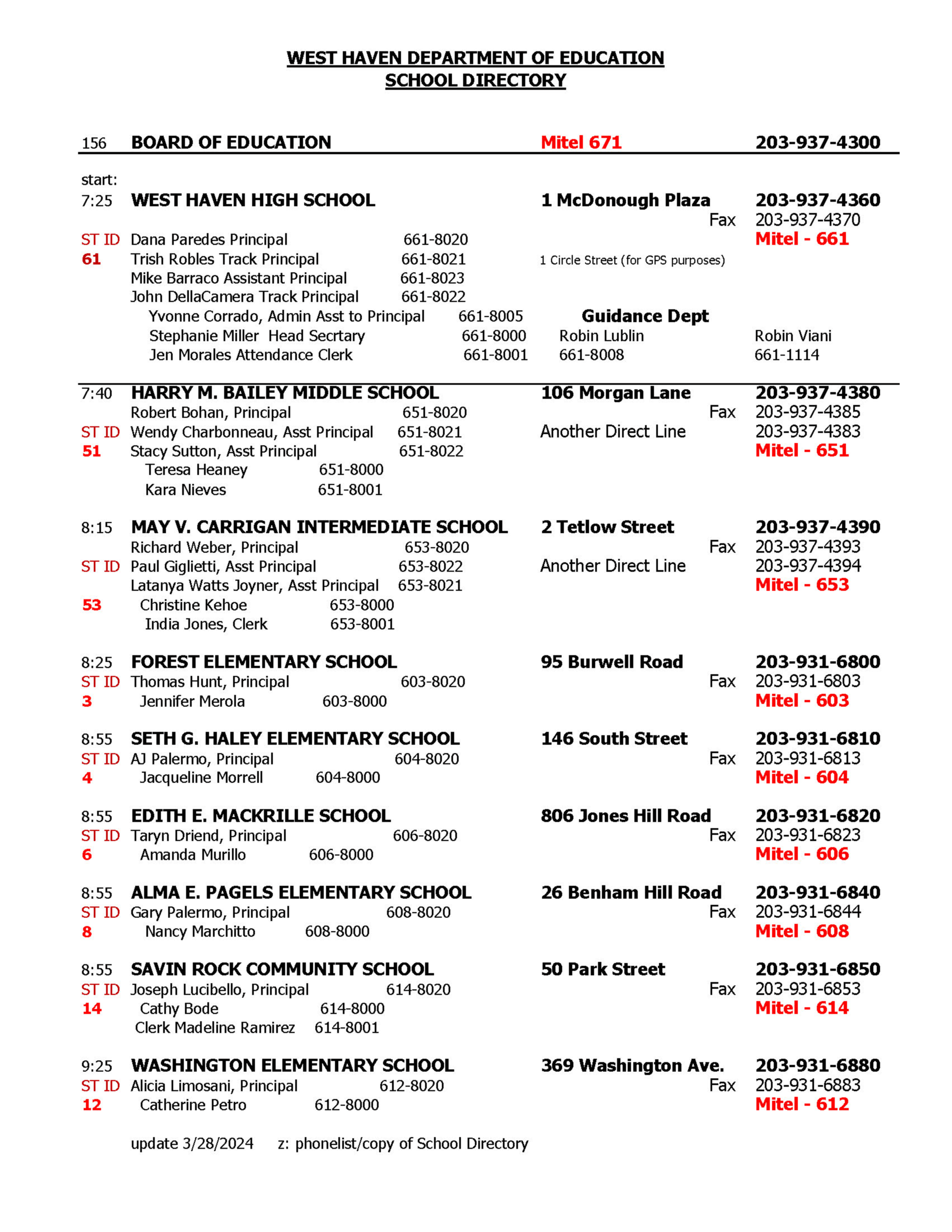 School Directory West Haven Public Schools