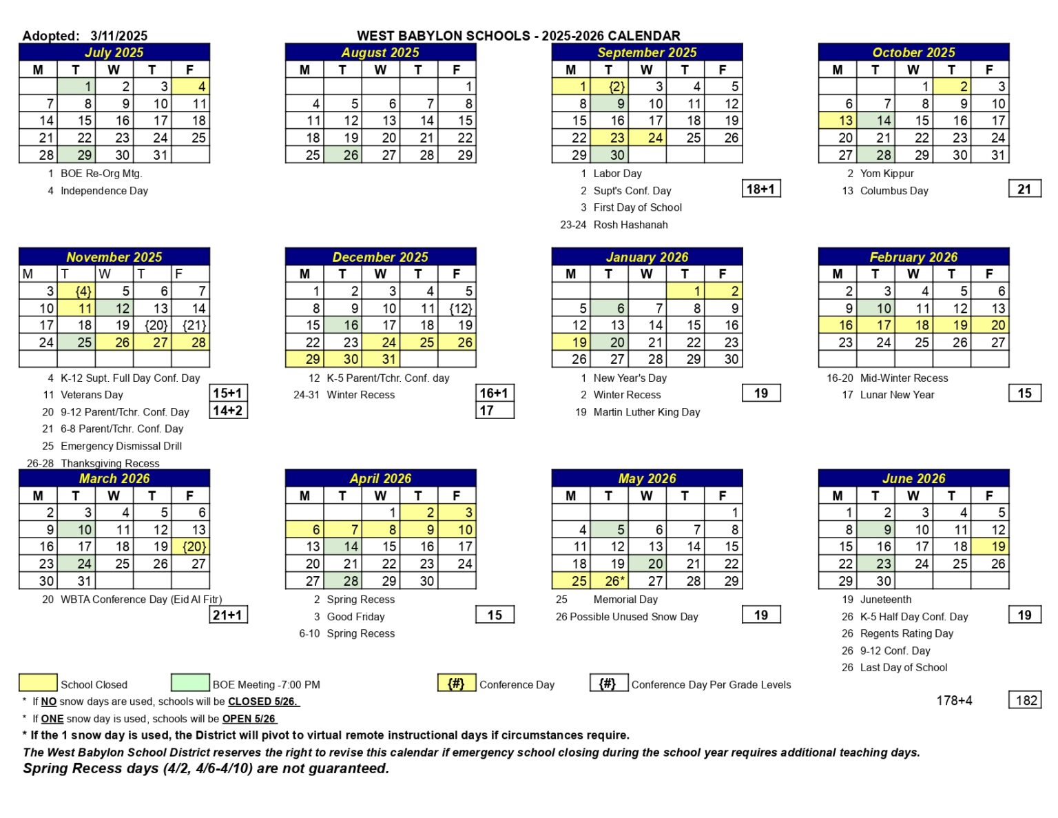 West Babylon Schools Calendar 25 26 PDF revised EduCounty