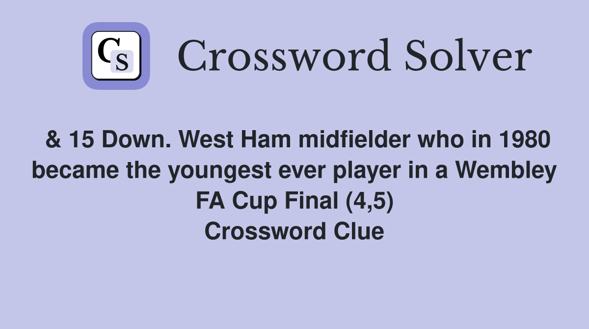 15 Down West Ham midfielder who in 1980 became the youngest ever