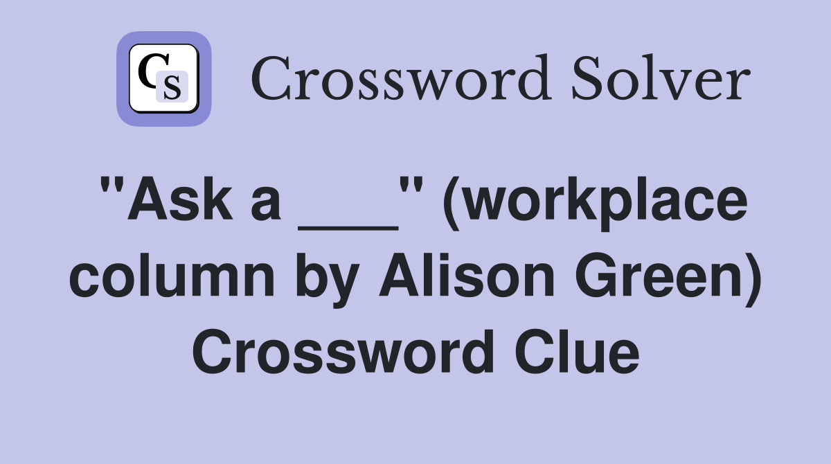 quot Ask a quot (workplace column by Alison Green) Crossword Clue Answers