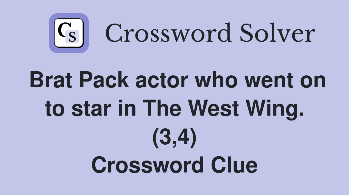 Brat Pack actor who went on to star in The West Wing (3 4) Crossword