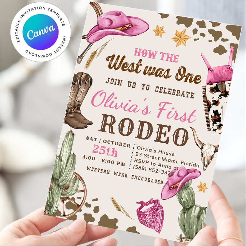 Editable How the West Was One Invitation Editable Cowgirl Birthday