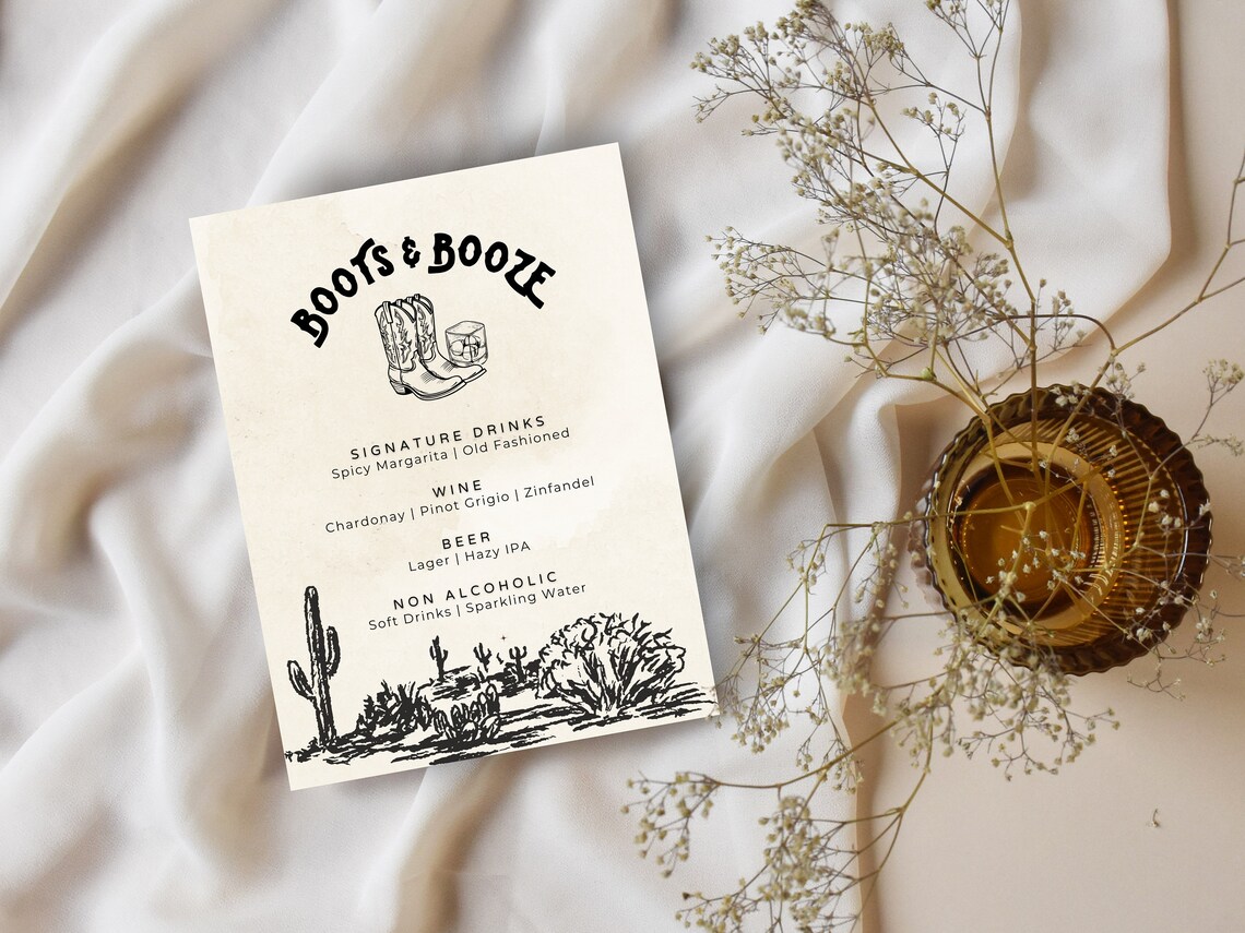 Western Themed Bar Menu Editable Wedding Bar Menu Western Wedding