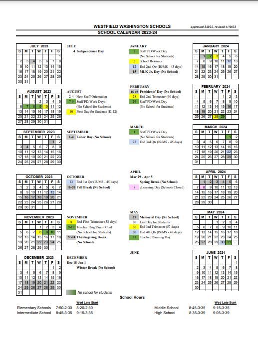 Westfield Washington Schools Calendar 2023 2024 Holidays