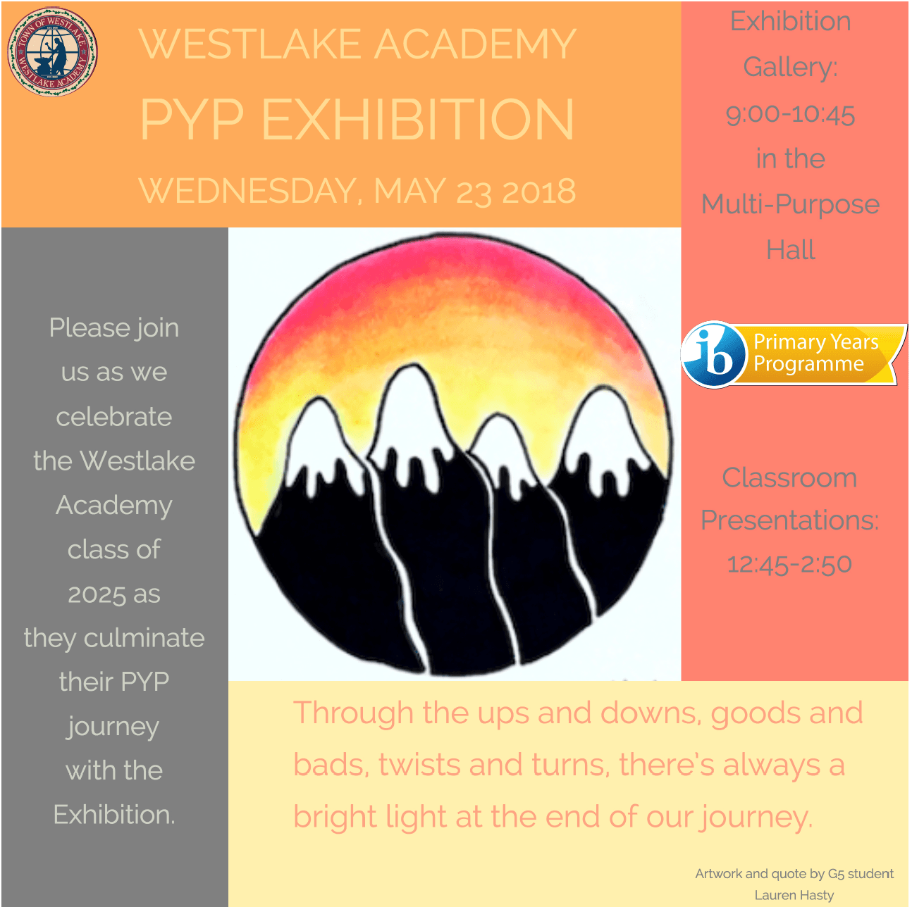 Calendar • Westlake Academy Annual Primary Years Student Exh