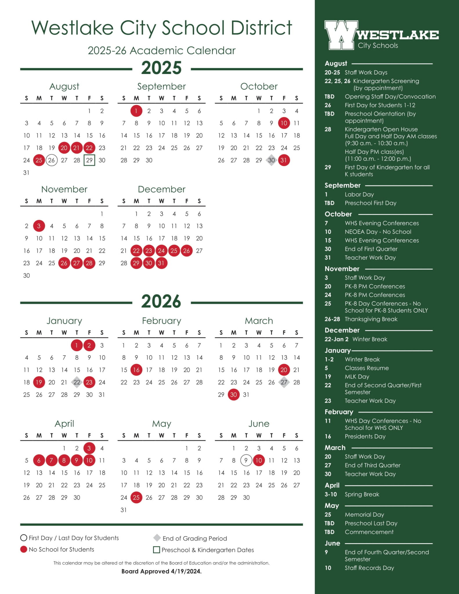Westlake City Schools Calendar 2024 2025 Calendars 2025