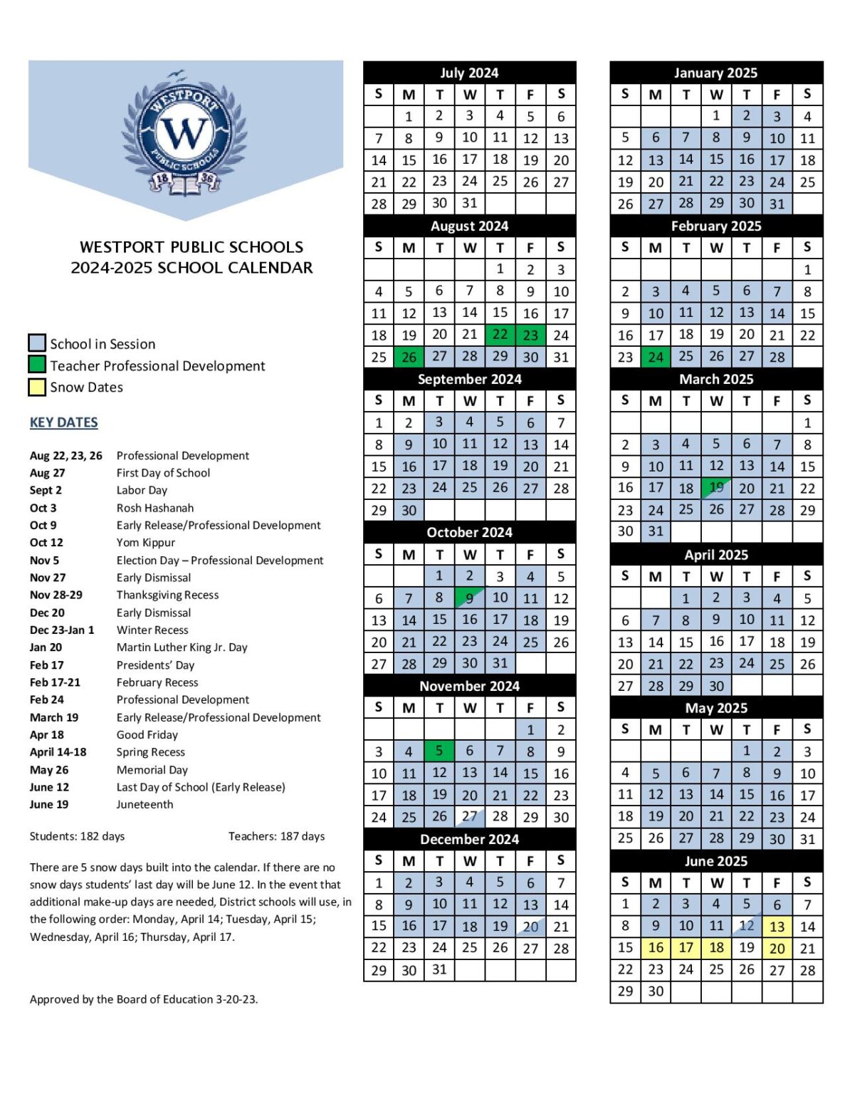 Westport Public Schools Calendar 2024 Schoolcalendars net