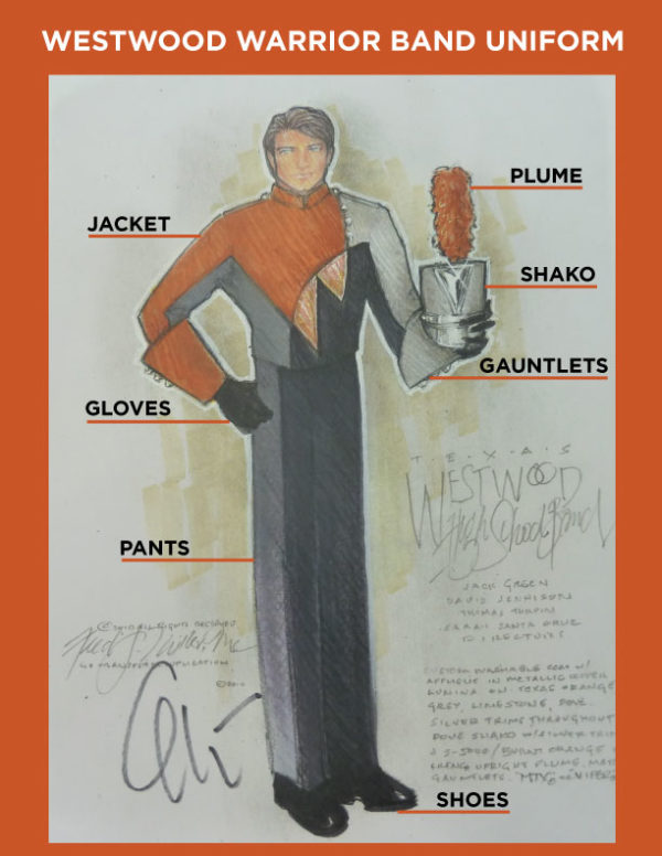 What are the parts of the marching uniform? Westwood Warrior Band
