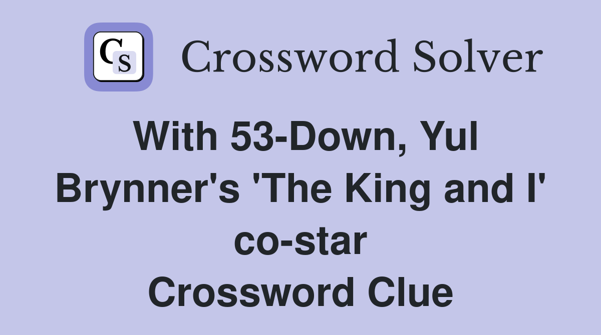 With 53 Down Yul Brynner #39 s #39 The King and I #39 co star Crossword Clue