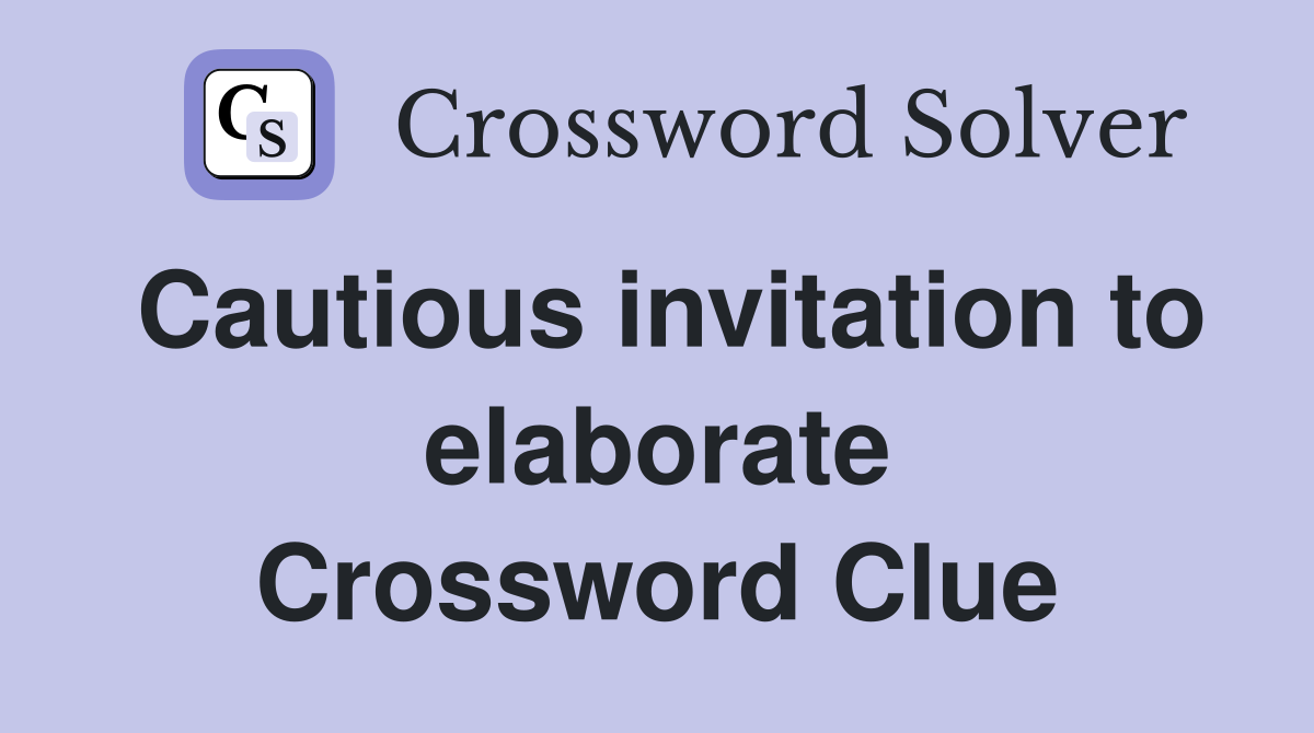Cautious invitation to elaborate Crossword Clue Answers Crossword