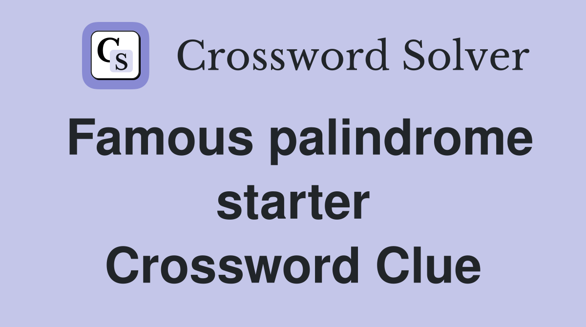 Famous palindrome starter Crossword Clue Answers Crossword Solver