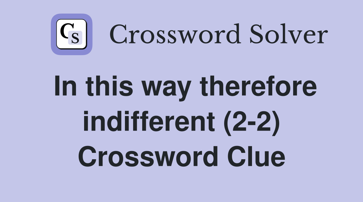 In this way therefore indifferent (2 2) Crossword Clue Answers