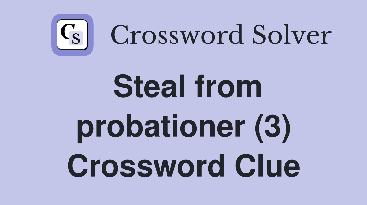 Steal from probationer (3) Crossword Clue Answers Crossword Solver