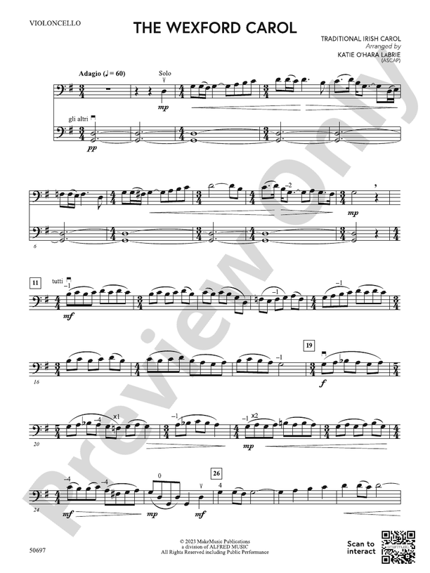 The Wexford Carol: Cello: Cello Part Digital Sheet Music Download