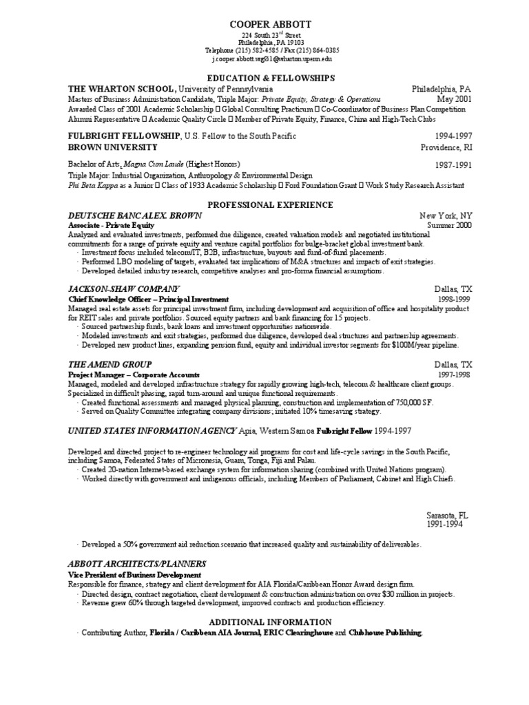 100 Wharton Resume Sample 1 1 PDF Samoa Private Equity