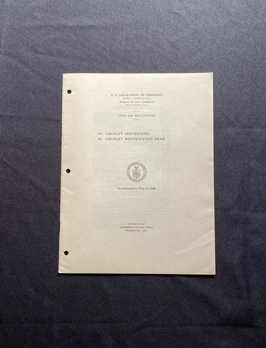 1938 Aircraft Certificates U S Department of Commerce Civil Air