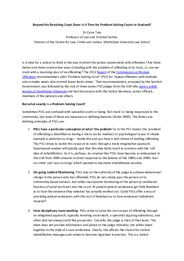 (PDF) Are Problem Solving Courts the Way Forward for Justice?