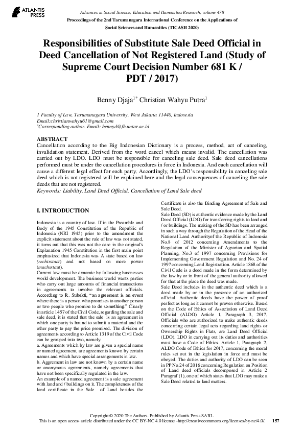 (PDF) Responsibilities of Substitute Sale Deed Official in Deed
