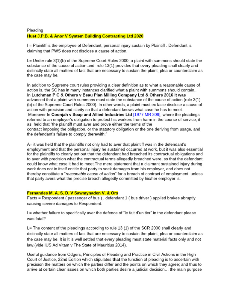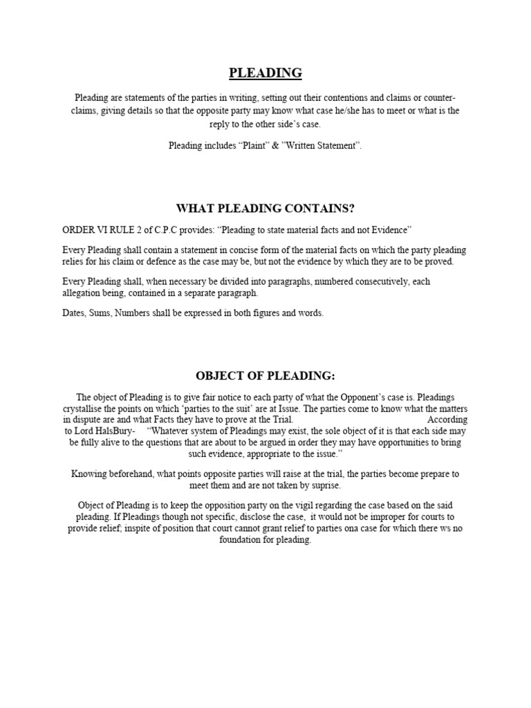 Civil Procedure Pleadings and Their Importance in Court Proceedings