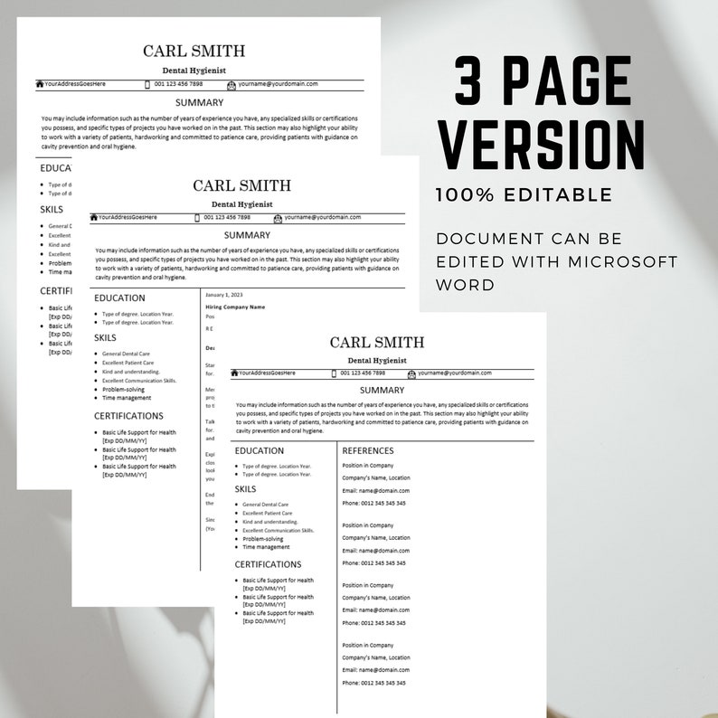 Dental Hygienist CV Template Modern Template in Word Dental Assistant