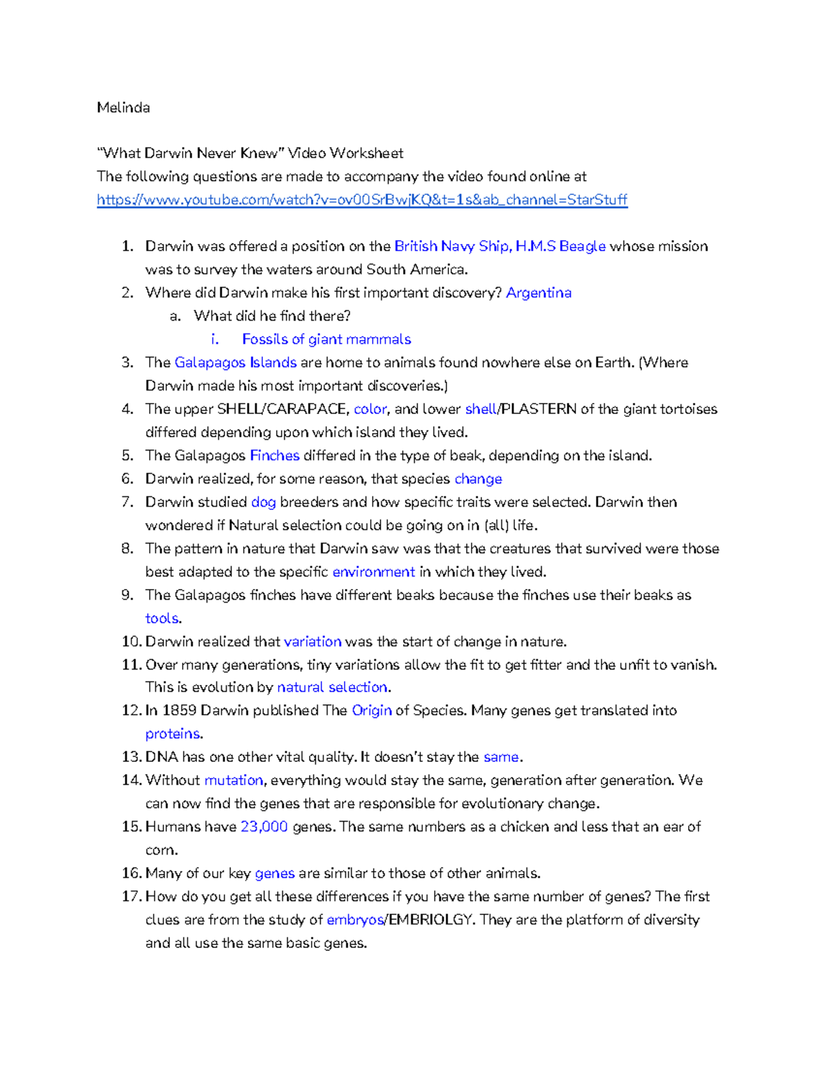Video Worksheet for What Darwin Never Knew by Megan Christensen TPT