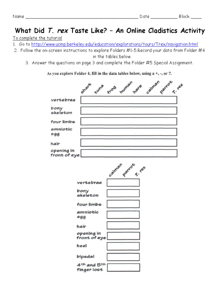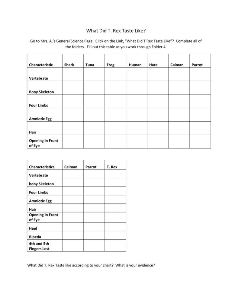 What Did A T Rex Taste Like Online Activity Biology Worksheets