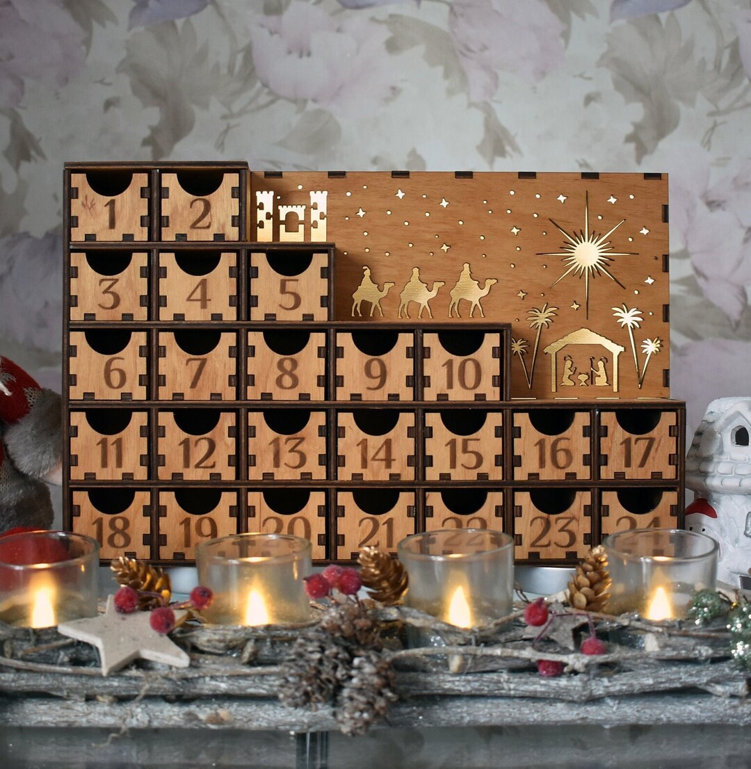 Wooden Advent Calendar With Drawers for Kids TeensChristmas Home