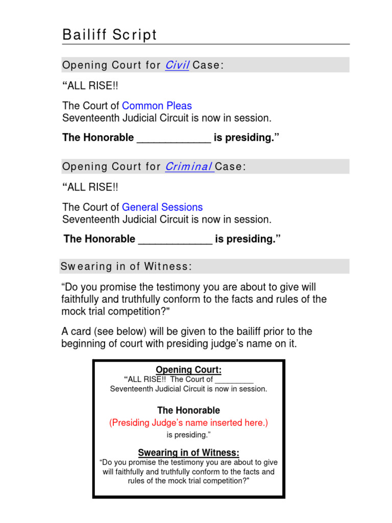 Bailiff Script PDF