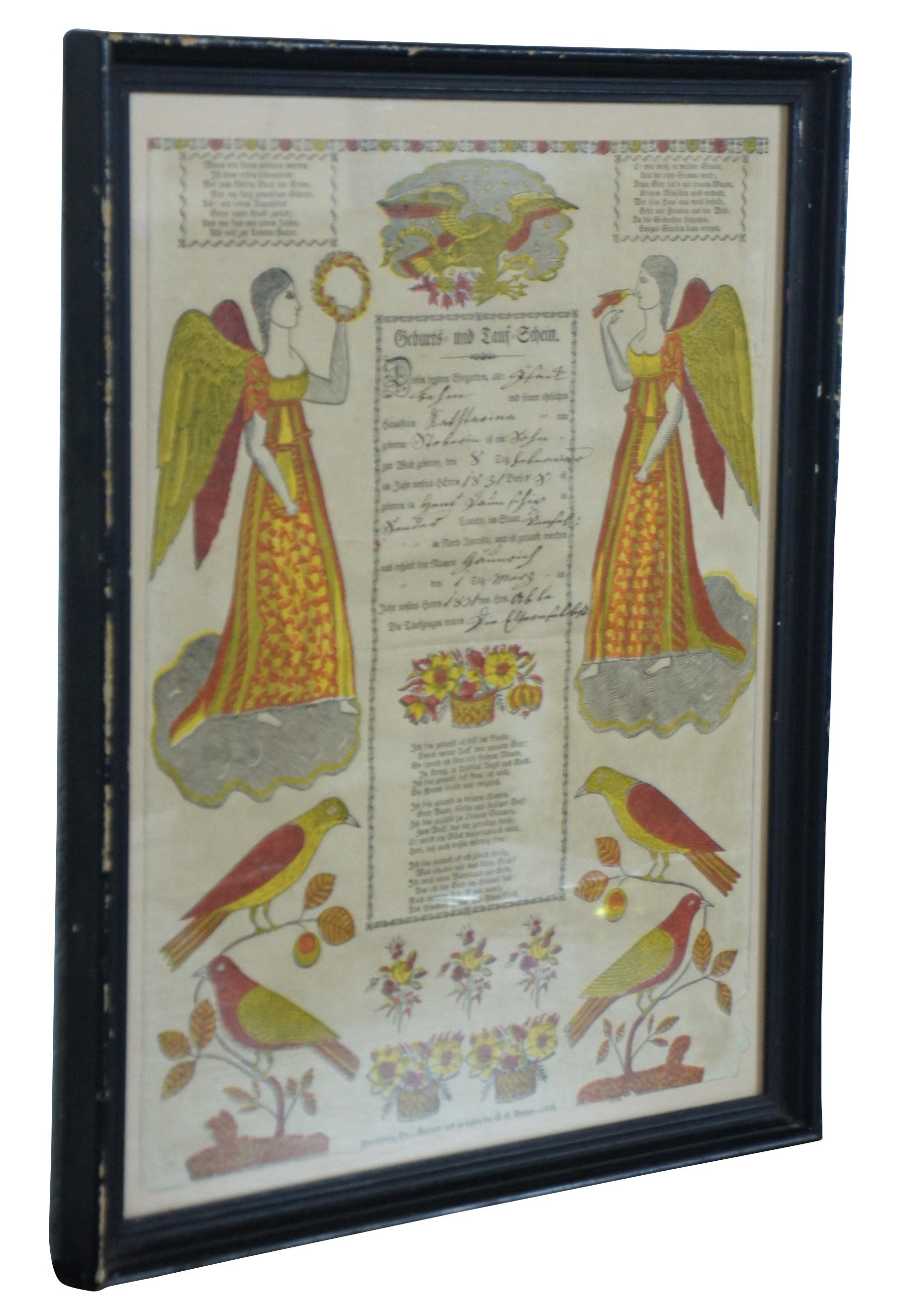 1830 Antique German Pennsylvania Dutch Birth and Baptismal Lithograph