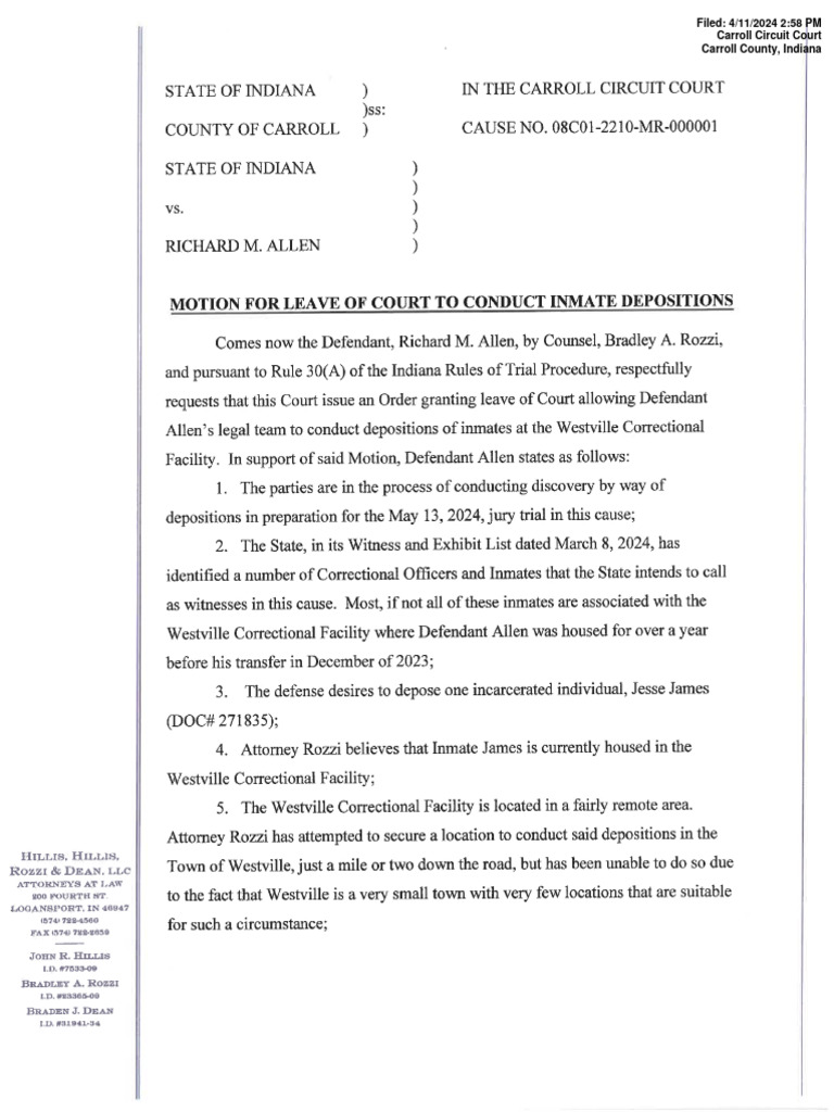 Motion For Leave of Court To Conduct Inmate Depositions PDF