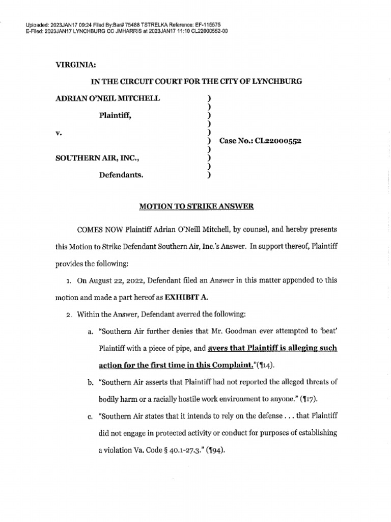 Motion To Strike Answer in Lynchburg Circuit Court PDF