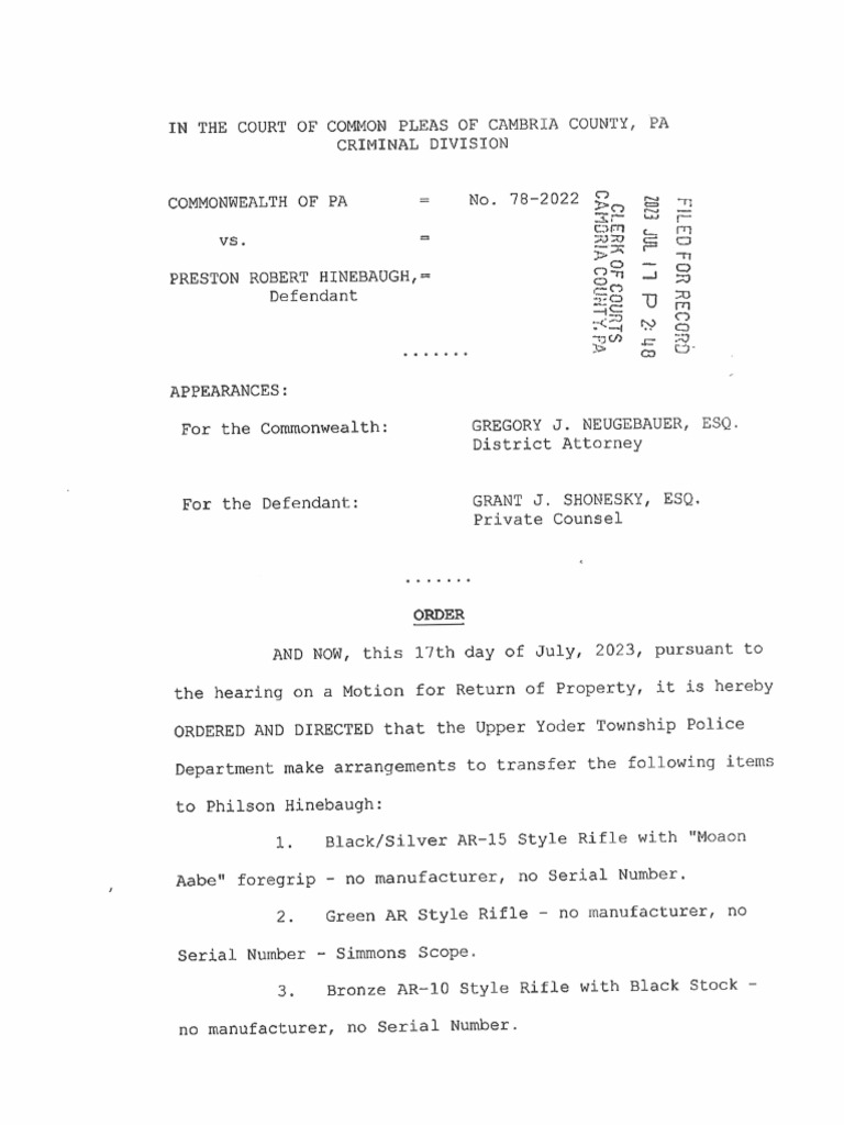 Westmont Shooting Plot Weapons Release Court Order PDF
