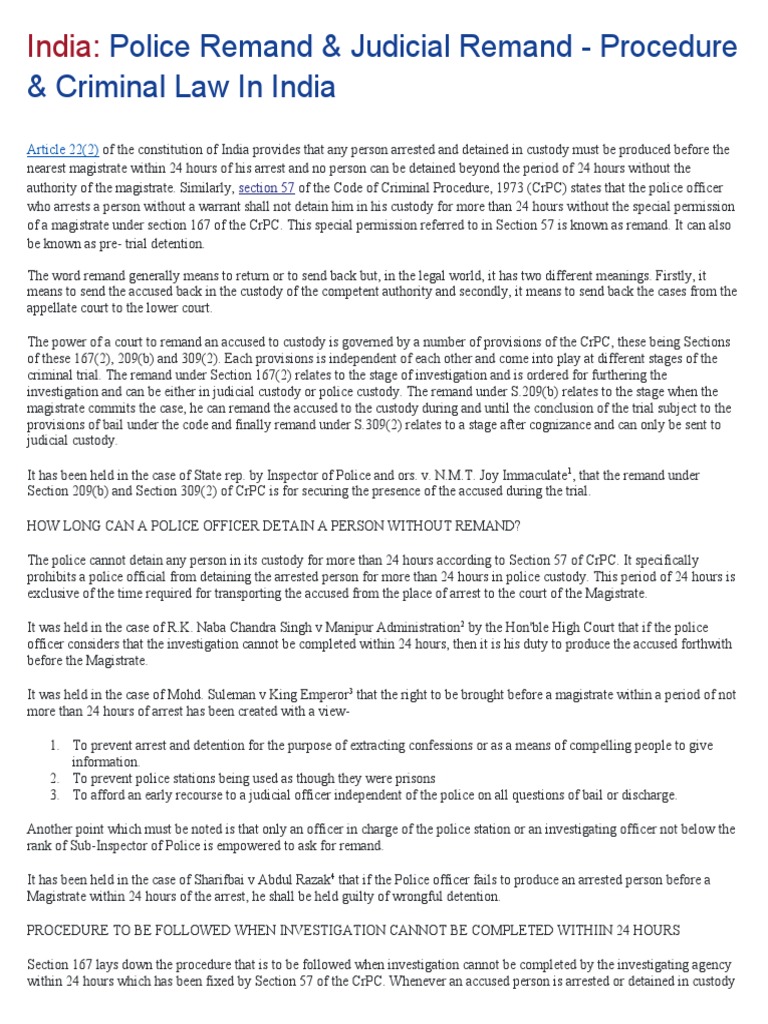 Physical Remand and Judicial Remand Remand (Detention) Magistrate