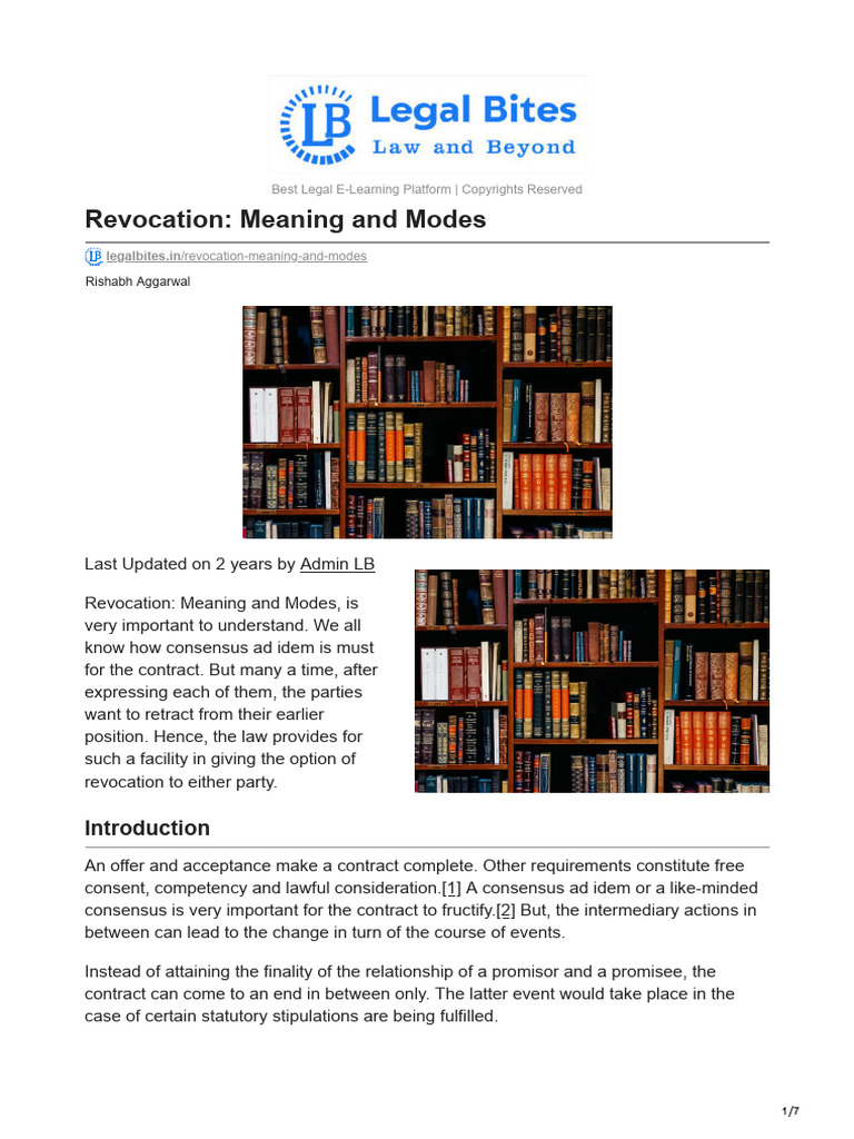 Legalbites In Revocation Meaning and Modes PDF Offer And