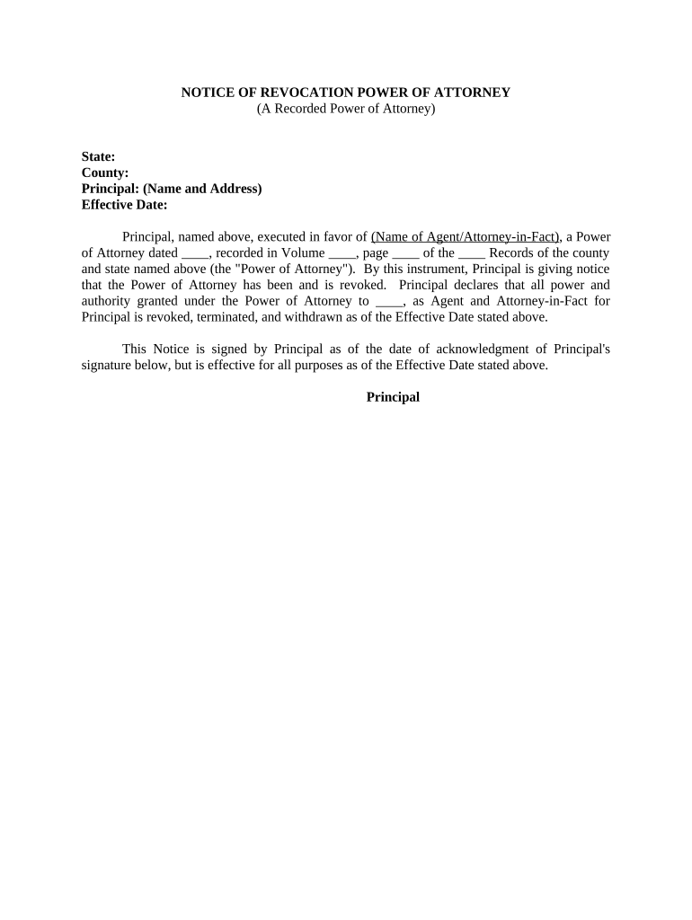 Notice of Revocation Power of Attorney for a Recorded Power of Attorney
