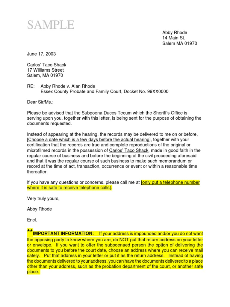 Sample Subpoena Letter PDF Public Law Social Institutions