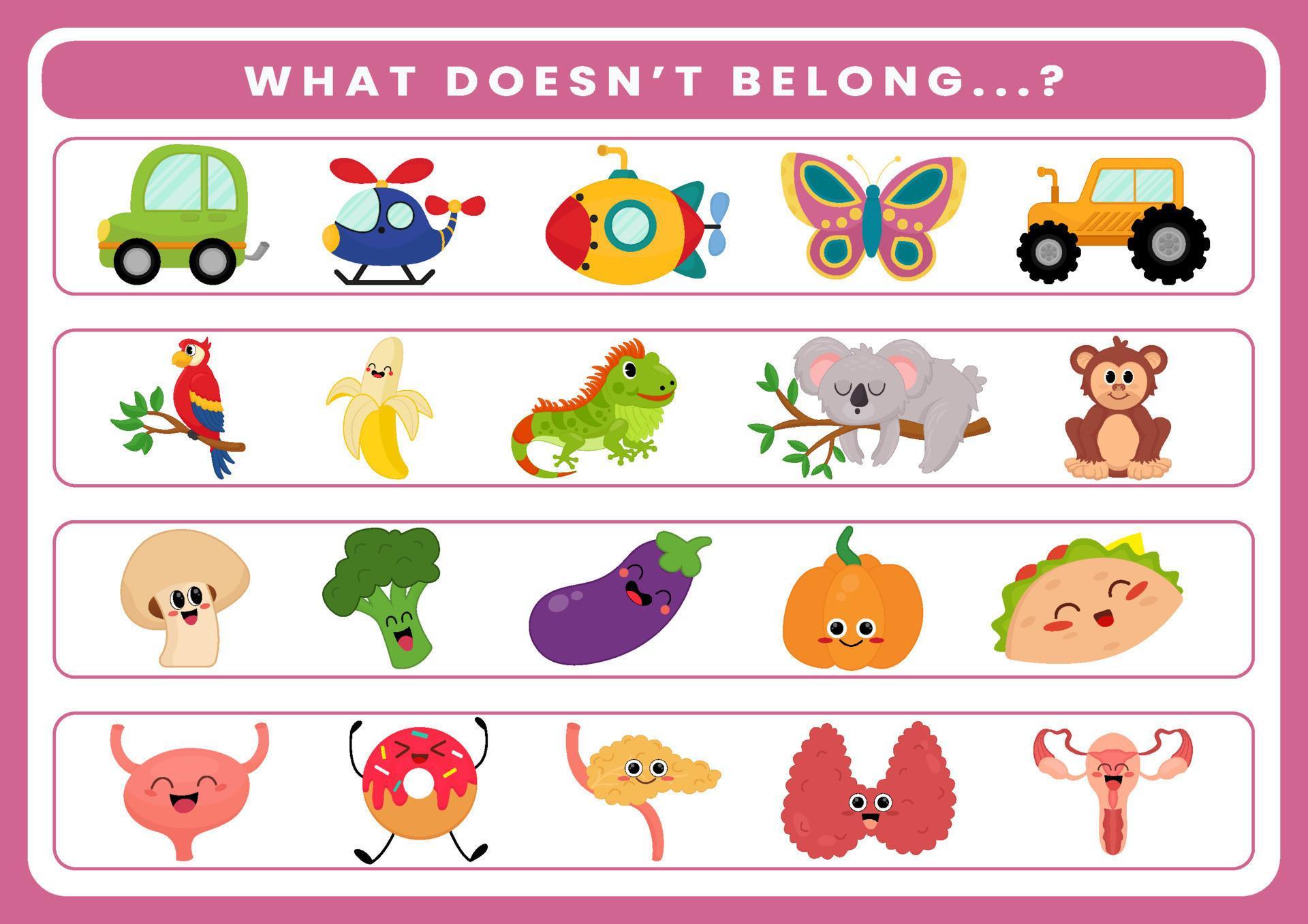 What doesn #39 t belong worksheet for kids 18745173 Vector Art at Vecteezy