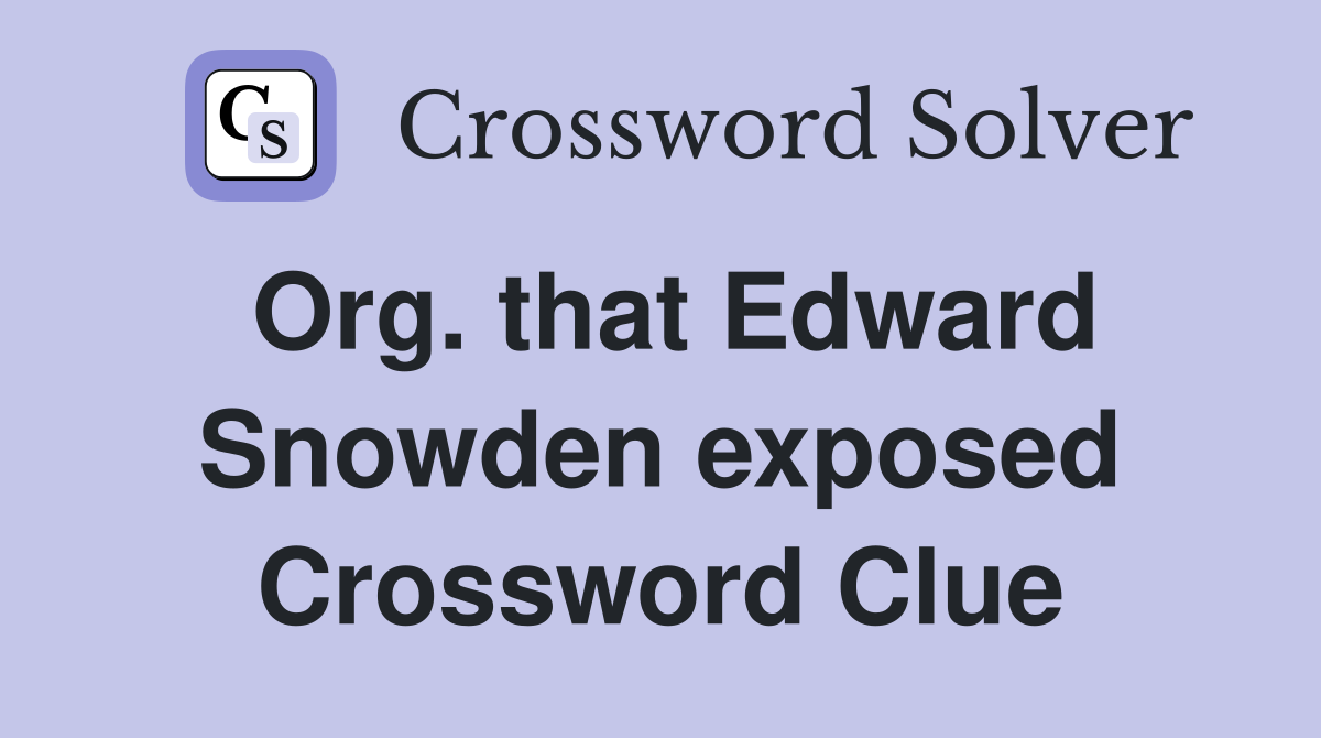 Org that Edward Snowden exposed Crossword Clue Answers Crossword