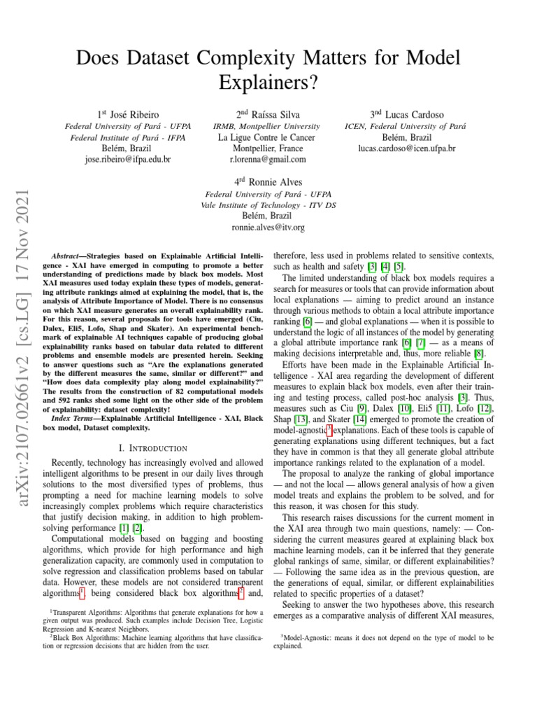 Does Dataset Complexity Matters For Model Explainers?: 1 Jos e Ribeiro