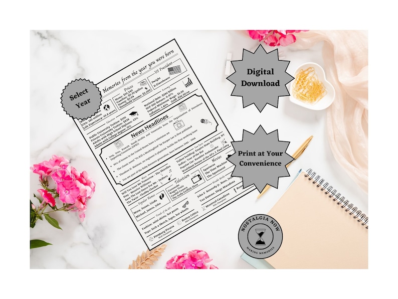 1944 PRINTABLE Year You Were Born/ Remember the Year When/ Last Minute